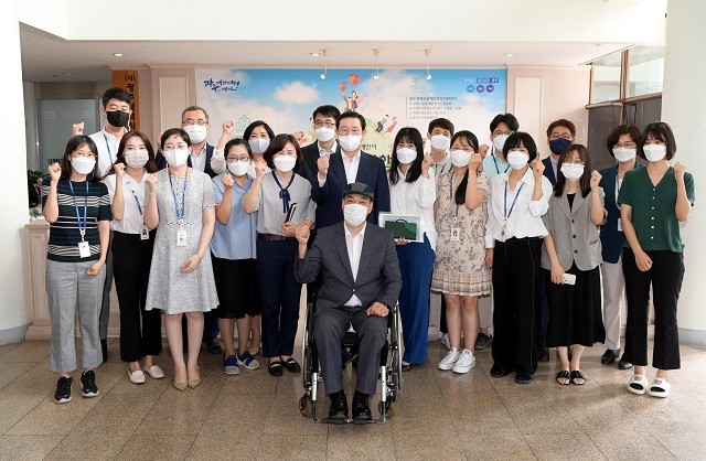농아인 쉼터에 이어 이 시장은 7월23일 화정청사 1층으로 이전·개소한 광주시 장애인종합지원센터를 방문해 사업 현황 등을 점검했다.
