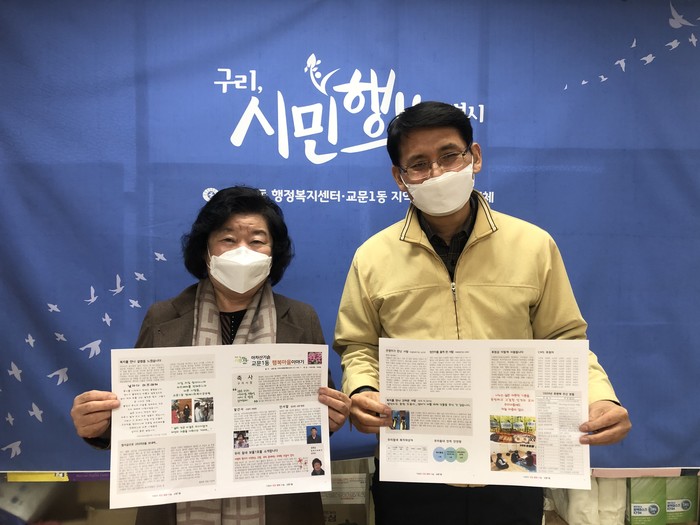 경기 구리시는 최근 교문1동 지역사회보장협의체 소식지 1호 '아차산 기슭 행복마을 이야기'를 발간했다. 아차산 기슭 행복마을 이야기는 시 최초의 동 지역사회보장협의체 정기 소식지로 분기별 1회 발간될 예정이다. 사진은 소식지 1호 발간을 기념해 관계자들이 창간호를 들고 기념촬영을 하는 모습. (사진제공=구리시청)