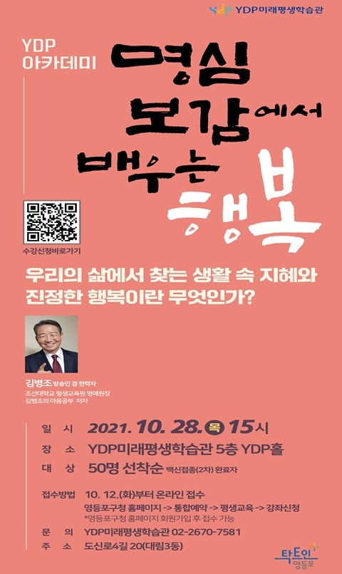 특강은 대림동에 위치한 YDP미래평생학습관 5층 YDP홀에서 2차 백신접종을 완료한 주민 50명과 함께 대면강의로 진행된다.