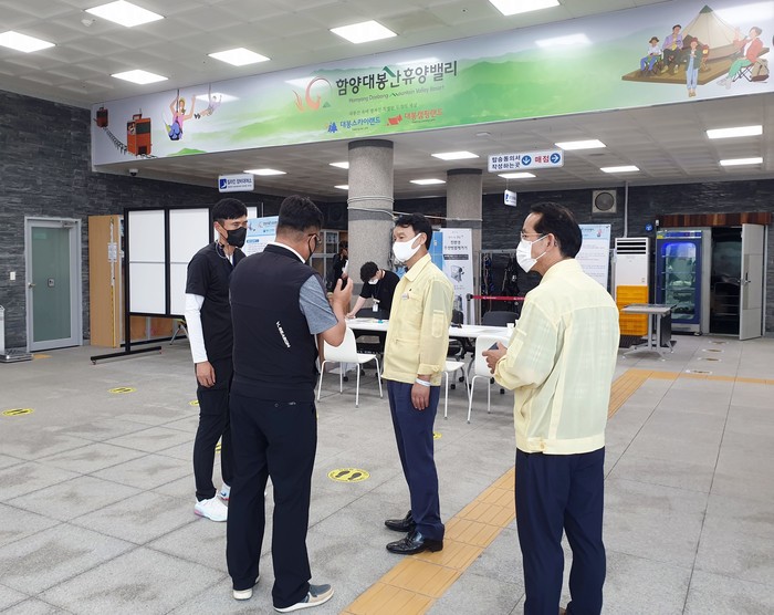 군에 따르면 지난 25일 레포츠 시설 지구인 대봉스카이랜드와 숙박시설 지구인 대봉캠핑랜드 현장을 돌며 시설물 운영 상황, 근로자 근무 여건, 코로나19 방역 상황 등 자체 점검을 실시했다.
