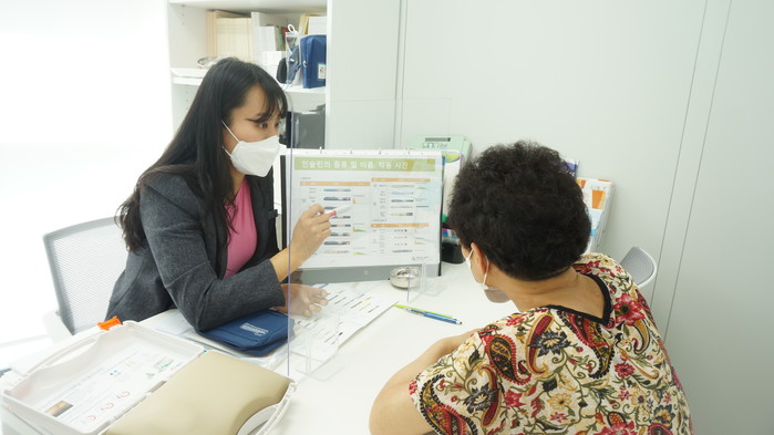 경기 하남시가 제2형 당뇨병 환자 중 당화혈색소 7% 이상으로 혈당조절이 어려운 30세 이상을 대상으로 '당뇨병 자가 관리 상담' 프로그램을 운영하고 있다. 프로그램을 통해 6개월간 혈당측정기 등을 지원하고, 전문가가 개인별 맞춤상담을 제공한다. 사진은 최근 당뇨병 환자가 당뇨병 자가 관리 상담을 받고 있는 모습. (사진제공=하남시청)