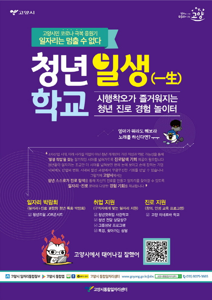 청년일생학교는 고양시가‘시행착오가 즐거워지는 진로 경험 놀이터’라는 슬로건으로 운영하는 청년 취업·진로 지원 사업이다.