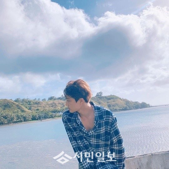 공개된 사진 속 카이는 뭉게구름과 바다를 배경으로 방파제에 걸터 앉아 있는 모습. 사진에서 카이는 갸름하고 여전히 잘생긴 턱선을 드러내 감탄을 자아냈다.
