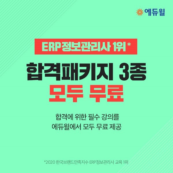 에듀윌 회원이라면 누구나 신청할 수 있으며, 신청일로부터 7일간 학습할 수 있다. ERP정보관리사 ‘합격패키지 3종’에 대한 자세한 내용은 에듀윌 홈페이지를 통해 확인 가능하다.