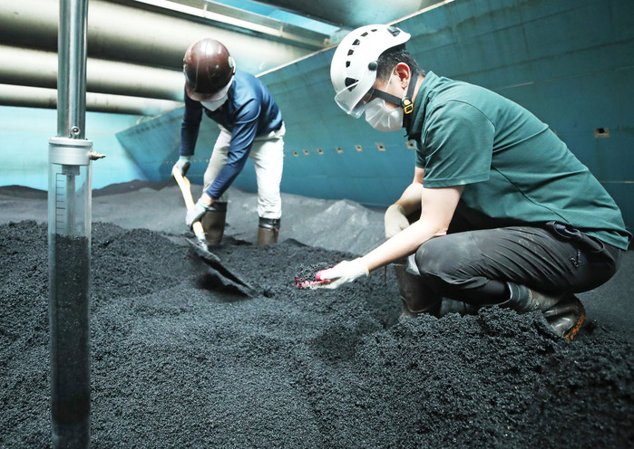 최근 인천시 등 일부 지자체 수돗물에서 유충이 발견됨에 따라 20일 오전 경기 용인시상수도사업소 용인정수장에서 관계자들이 안전한 수돗물을 위해 여과지 활성탄 검체 채취 작업을 하고 있다.