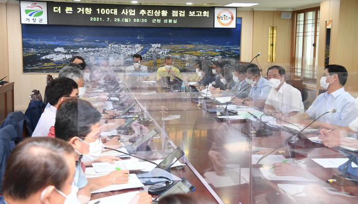 거창군은 26일 구인모 군수 주재로 군청 상황실에서 간부공무원이 참석한 가운데 더 큰 거창 100대 사업 추진상황 점검보고회를 개최했다.