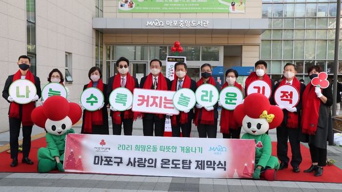 [시민일보 = 홍덕표 기자] 서울 마포구(구청장 유동균)가 11일 오후 마포중앙도서관 광장에서 '2021 따뜻한 겨울나기' 사업 홍보를 위한 '사랑의 온도탑' 제막식을 개최했다.