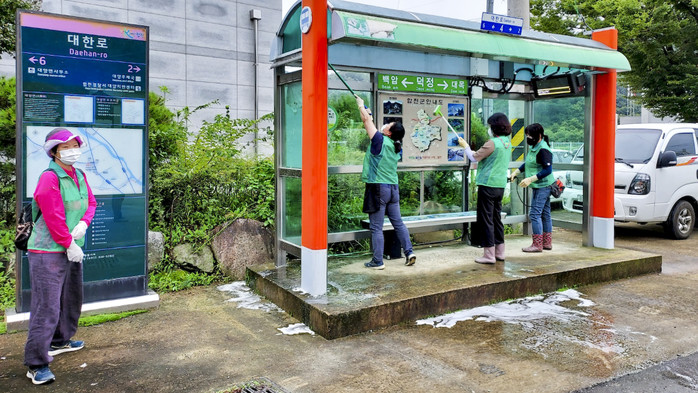 합천군 대양면 새마을협의회(회장 주재근, 심경자)에서는 지난 7일 회원 25여 명이 참여한 가운데 대양면 일대 버스 승강장의 환경정화 활동 및 방역작업을 실시했다.