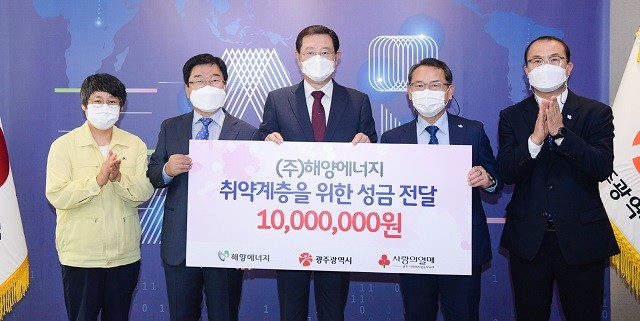 ㈜해양에너지는 지역 코로나19 피해지원과 수해피해 복구를 위한 성금 1000만 원을 전달했다.