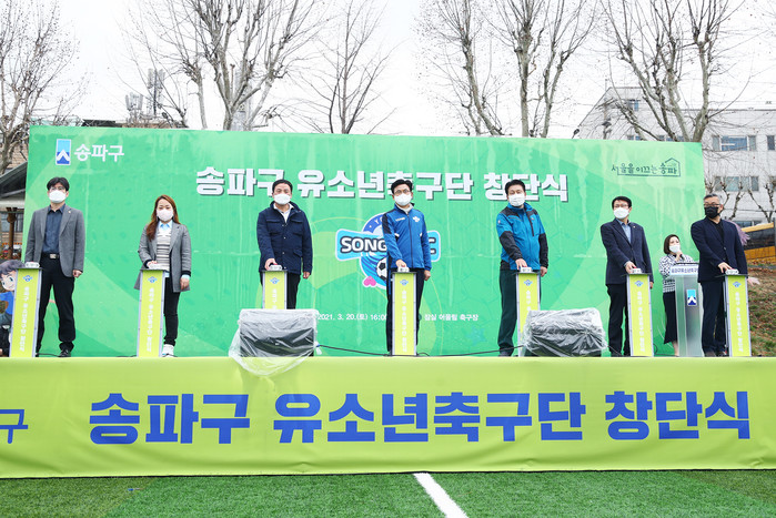 송파구유소년축구단은 서울시 25개 자치구 중 최초로 창단된 구립유소년축구단으로서 감독1명, 코치2명, 선수34명 등 총 37명으로 구성되었으며 초등학교 2학년~6학년으로 이루어진 선수들은 2차례에 걸친 단원심사를 통해 선정되었고 향후 코로나19 상황에 맞춰 정기훈련 및 각종 대회에 출전할 예정이다.