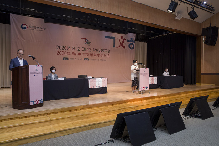 국립중앙도서관은 지난 25일 ‘중국 소재 한국 고문헌 소장현황과 디지털화’란 주제로 '2020년 한·중 고문헌 학술심포지엄'을 온라인으로 개최했다. 사진은 서혜란 국립중앙도서관 관장(오른쪽에서 두 번째)이 개회사를 하고 있는 모습. (사진제공=국립중앙도서관)