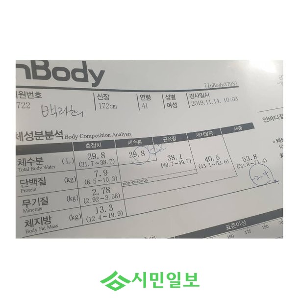 그가 공개한 사진에는 체지방을 분석한 표가 담겨 감탄을 자아냈다.