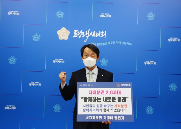 [평택=오왕석 기자] 평택시의회 홍선의 의장은 지난 20일 자치분권 2.0시대 개막을 응원하는‘자치분권 기대해’ 챌린지에 참여했다.