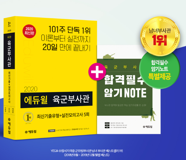 20일 과정으로 마련된 ‘2020 에듀윌 육군부사관 최신기출유형+실전모의고사 5회’ 수험서는 에듀윌 도서몰을 비롯해 교보문고, 알라딘, 인터파크 도서, 예스24 등 온오프라인 서점에서 만나볼 수 있다.