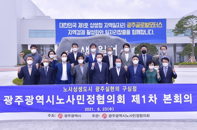 [광주=정찬남 기자] 광주광역시는 노사상생 문화 조성을 통한 일자리 창출과 지역경제 활성화를 위해 ㈜광주글로벌모터스 브리핑룸에서 23일 ‘노사민정협의회 1차 회의’를 개최했다고 밝혔다.