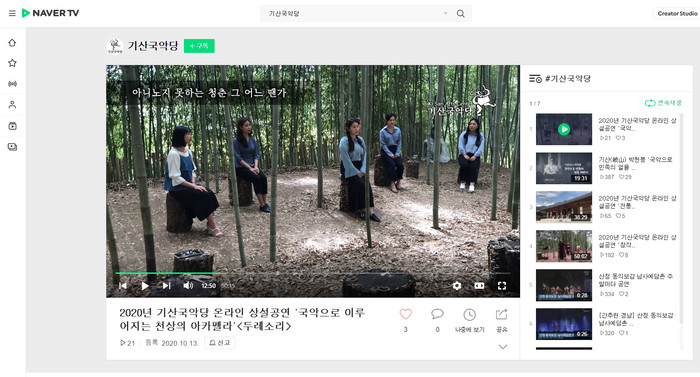 해당 공연들은 모두 네이버TV에서 ‘기산국악당’을 검색하면 동영상 스트리밍 서비스를 통해 시청할 수 있다.