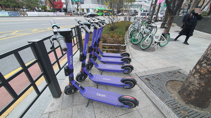 9일 서울 시내에 공유 전동 킥보드가 놓여있다. 지난 5월 국회를 통과한 도로교통법 개정안은 만 13세 이상도 운전면허 없이 전동 킥보드 등 개인형 이동장치(PM)를 이용할 수 있도록 했다. 지난달 30일 국토교통부와 행정안전부, 경찰청은 공유 전동 킥보드는 만 18세 이상만 이용할 수 있게 했다. 만 18세 이상이면 운전면허가 없어도 된다. 만 13세 이상이면 전동 킥보드를 직접 사서 타는 것만 가능하다.