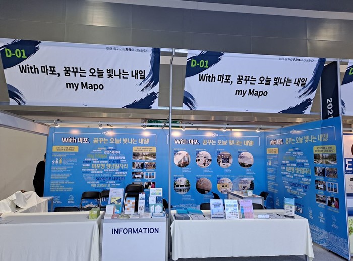 | ▲ ‘2021 대한민국 일자리 엑스포’ 마포구 홍보부스 모습. (사진제공=마포구청) |