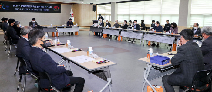 (사)합천군교육발전위원회는 지난 23일 합천군청 3층 대회의실에서 문준희 이사장을 비롯해 대의원 27명이 참여한 가운데 2021년도 정기총회를 개최했다