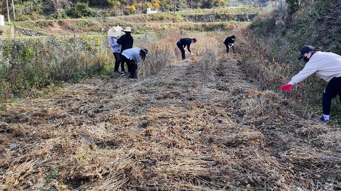 이날 합천읍사무소 직원 10여 명은 콩 수확을 앞두고 병원 입원으로 어려움을 호소한 합천읍 장계리에 거주하는 고령 농가(여, 80세)를 방문해 콩 뽑기 작업 등을 하며 농가에 힘을 보탰다.