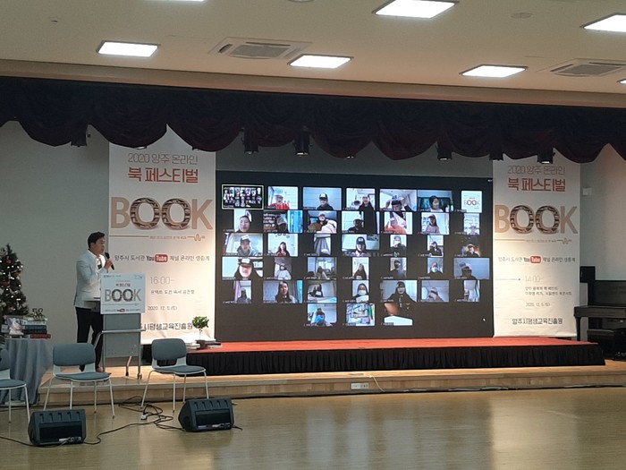 경기 양주시는 지난 5일 ‘2020 양주 온라인 북페스티벌’을 열고,‘랜선 타고 집으로 온 책 축제’를 주제로 온라인을 통해 비대면으로 진행했다. 사진은 사전 신청자와 화상으로 실시간 랜선 북콘서트를 진행하고 있는 모습. (사진제공=양주시청)