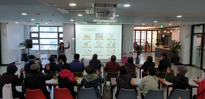 찾아가는 보건·복지서비스 시범동으로 지정된 경기 수원시 장안구 율천동은 건강관리서비스가 강화된 찾아가는 보건·복지서비스의 확대 실시를 위해 지난 14일 밤밭문화센터 2층 밤밭누리마루홀에서 지역내 60세 이상 노인을 대상으로 치매예방교육을 실시했다. 사진은 강사가 교육을 진행하는 모습. (사진제공=장안구청)