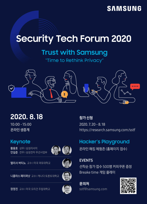 이번 포럼은 보안의 중요성을 다시 한번 강조하는 의미로 '프라이버시를 다시 생각하다(Time to Rethink Privacy)'라는 테마로, 전문가의 기조 강연과 삼성리서치의 보안 분야 주요 연구 활동· 인사이트를 공유하는 기술 세션으로 진행된다.