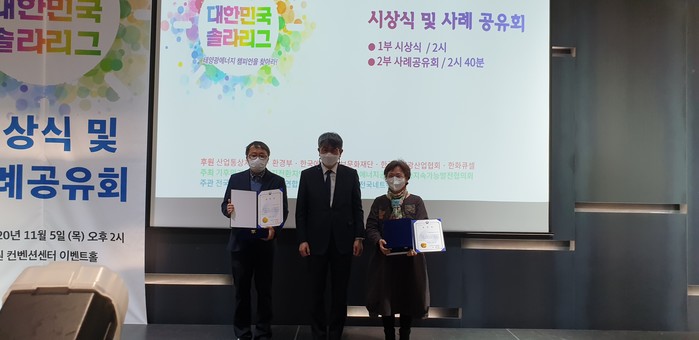 경기 화성시가 최근 수원컨벤션센터 이벤트 홀에서 열린 제2회 대한민국 솔라리그(K-Solar League) 시상식에서 산업통상자원부 장관상을 수상했다. 사진은 시상식 후 기념촬영을 하고 있는 수상자들의 모습. (사진제공=화성시청)