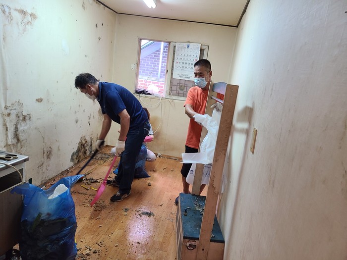 경기 동두천시 로컬드림봉사회는 최근 생연1동 무연고 기초생활수급자 노인가구의 집 청소 및 방역 봉사활동을 전개했다. 사진은 봉사회 회원들이 집안을 청소하고 있는 모습. (사진제공=동두천시청)