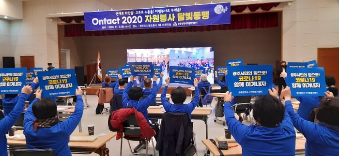 이날 행사는 광주시에서 준비한 공연을 온라인을 통해 중계하고, 달빛스토리 영상 상영, 나눔 물품 제작·배포 등 순으로 열렸다. 이 자리에서는 코로나19 장기화로 지치고 힘든 자원봉사자들이 서로를 위로하고 격려하며, 달빛동맹의 정을 확인했다.