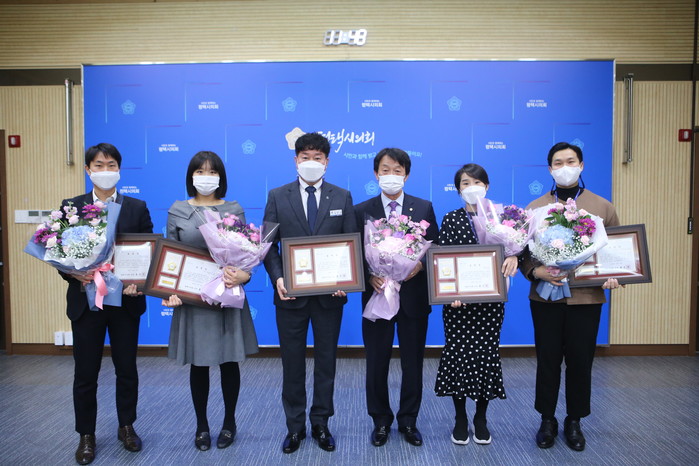 평택시의회(의장 홍선의)는 지난 22일 평택시 혁신동호회(소행성) 성과 발표대회 최우수팀(팀명 ‘쿨사이다’, 팀장 김만규) 공무원들에게 시의장 표창을 수여하고 격려했다.