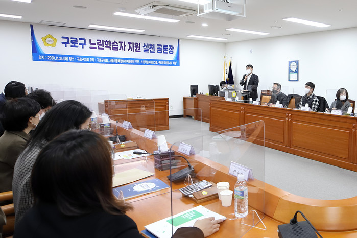 [시민일보 = 이대우 기자] 서울 구로구의회(의장 박동웅)가 위원회실에서 구로지역 느린학습자 지원 실천 공론장을 열고 사회적응에 어려움을 겪지만 법적으로 장애인이 아니라 지원을 받지 못하는 ‘느린학습자’의 지원방안과 발전방향을 모색했다.