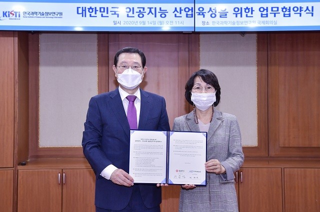 광주시는 14일 오전 이용섭 시장과 한국과학기술정보연구원 최희윤 원장 등이 참석한 가운데 대전 카이스트 내에 위치한 한국과학기술정보연구원 국제회의실에서 ‘대한민국 인공지능 산업육성’을 위한 업무협약을 체결했다.