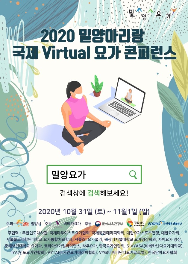 밀양시는 10월 31일부터 11월 1일까지 양일간 ‘세계 건강과 평화를 위한 요가’를 주제로 밀양아리랑 국제 Virtual 요가 콘퍼런스를 개최한다고 밝혔다.
