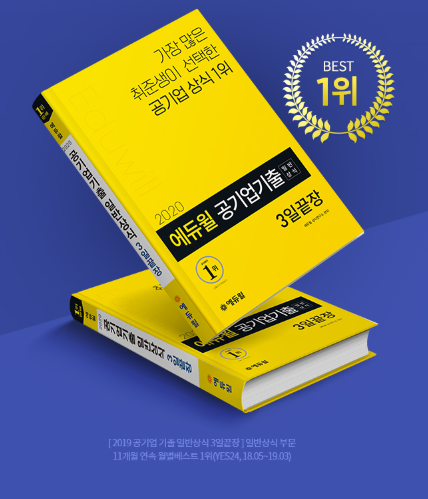 [시민일보 = 황혜빈 기자] 종합교육기업 에듀윌(대표 박명규)이 발간한 ‘2020 에듀윌 공기업 기출 일반상식 3일끝장’ 수험서가 온라인서점 YES24의 기능직 10급 부문 5월 4주차 베스트셀러 1위를 차지했다.
