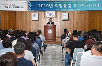 경남 창녕군(군수 한정우)은 명예사회복지공무원 동동그리미를 포함한 마을복지리더와 지역주민 150여명을 대상으로 2019년 희망울림 복지아카데미 개강식을 23일 창녕군청 대회의실에서 개최했다.