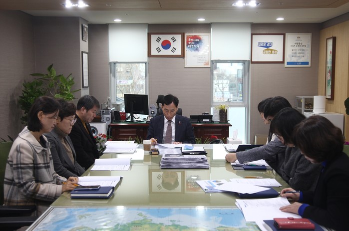 권찬호 경기 수원시 팔달구청장은 6일 행정지원과를 시작으로 11개 부서에 대한 2020년 주요 업무계획 보고회를 실시하고 구정 현안사항 챙기기에 돌입했다. 사진은 권 구청장이 직원들과 회의하고 있는 모습. (사진제공=팔달구청)