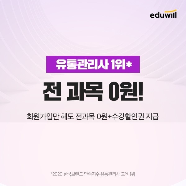 유통관리사 ‘전과목 기본강의 0원’ 이벤트에 대한 자세한 내용은 에듀윌 홈페이지를 통해 확인 가능하다.