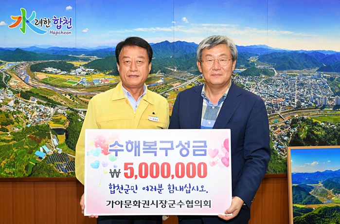 이에, 문준희 합천군수는 “코로나19 확산 등 어려운 시기에 수해 피해를 입은 우리군에 나눔을 해주어 감사하다. 전달해주신 성금은 골고루 분배하여 사용될 수 있도록 하겠다”고 말했다.