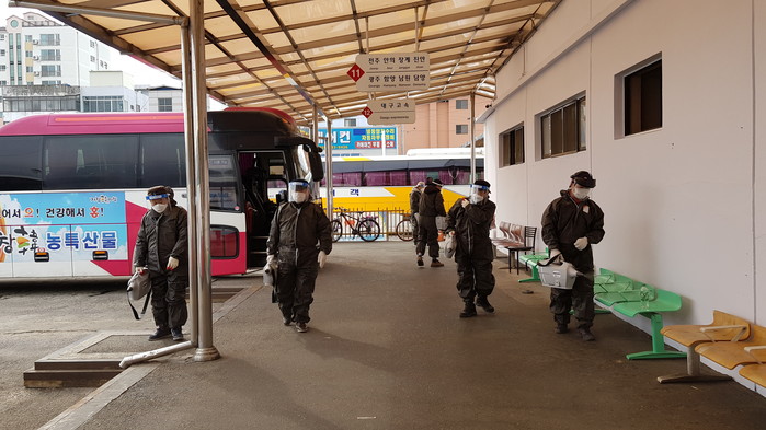 방역소독반은 불특정 다수가 이용하는 시외·시내버스터미널, 버스·택시 승강장, 목욕탕뿐만 아니라, 상인과 방문객이 안심하고 전통시장을 이용할 수 있도록 거창전통시장과 공용화장실 등 다중이용시설에 방역소독을 실시하여 코로나19 예방 및 차단에 집중하고 있다.