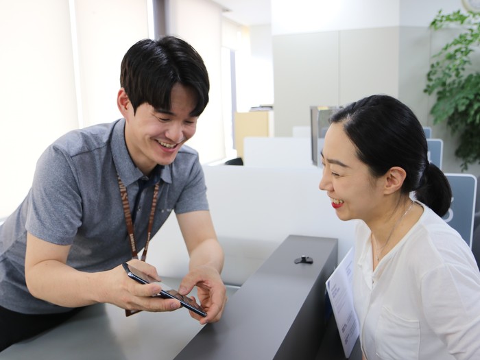 | ▲ 삼성전자서비스 수리 엔지니어가 고객에게 스마트폰 점검 결과를 설명하고 있다.(사진제공=삼성전자서비스) |