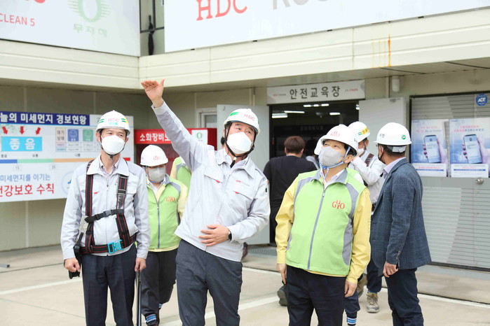 이성 서울 구로구청장은 13일 남부교정시설 이적지에 건설 중인 민간임대주택 공사장 특별안전점검을 실시해 공사 현장을 둘러보고 낙하물 방지망 등 안전관리시설을 집중적으로 살폈다. 사진은 이 구청장(오른쪽에서 두 번째)이 공사 관계자들과 함께 현장점검을 하고 있는 모습. (사진제공=구로구청)