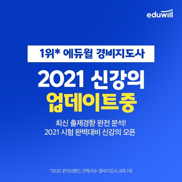 한편, 에듀윌 경비지도사는 ‘2020 한국브랜드만족지수 경비지도사 교육 1위’를 차지했다.
