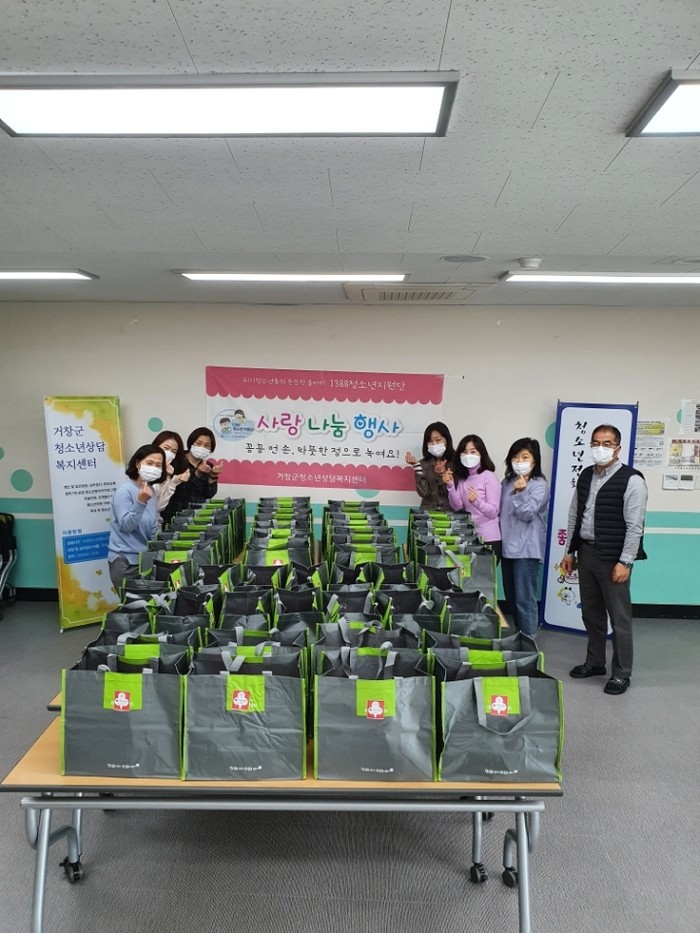 한편, 거창군 1388청소년지원단은 위기청소년에 관심과 애정을 가진 민간단체 및 개인으로 이뤄진 자발적인 조직으로 40여 명이 위촉돼 활동 중이며, 2009년부터 해마다 연말 ‘사랑나눔’ 행사를 진행하고 있다.