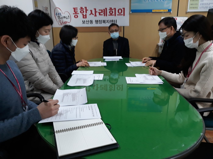 경기 동두천시 보산동행정복지센터가 최근 내부사례회의를 열고 생계에 어려움을 겪고 있는 신규 사례관리 대상자 6가구를 선정, 이 가구의 위기 해소를 위해 긴급생계비 및 기초생활수급 맞춤형급여 신청, 집수리사업 연계 등 민간 및 공공 자원 활용을 위한 심도 있는 논의를 진행했다. 사진은 이날 회의가 진행되고 있는 모습. (사진제공=동두천시청)