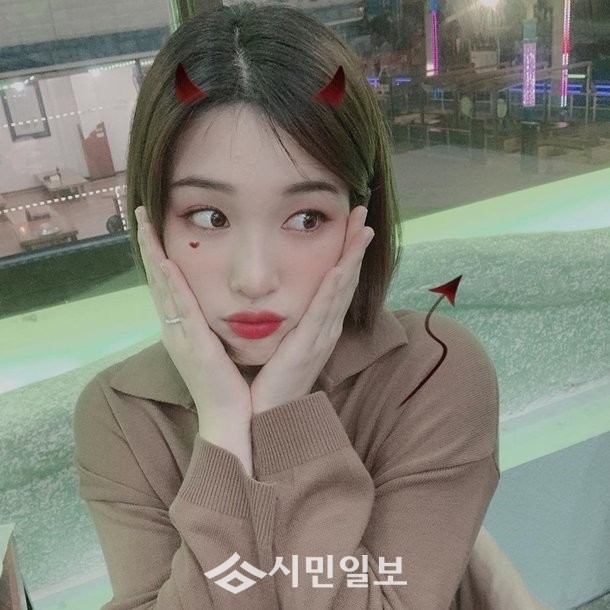 공개된 사진 속 율희는 악마 어플을 통해 귀여운 모습을 드러내 누리꾼들의 눈길을 끌었다.