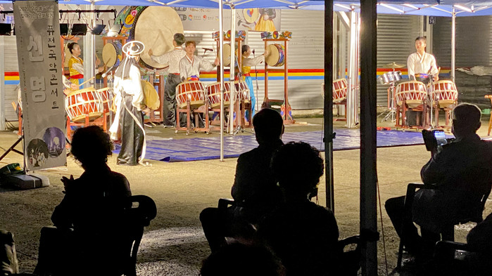 당초 이날 공연은 합천향교 내에서 진행될 예정이었으나, 우천관계로 관람석 거리두기를 준수하기 위해 야로면 시장 옆 공터에서 펼쳐졌다.