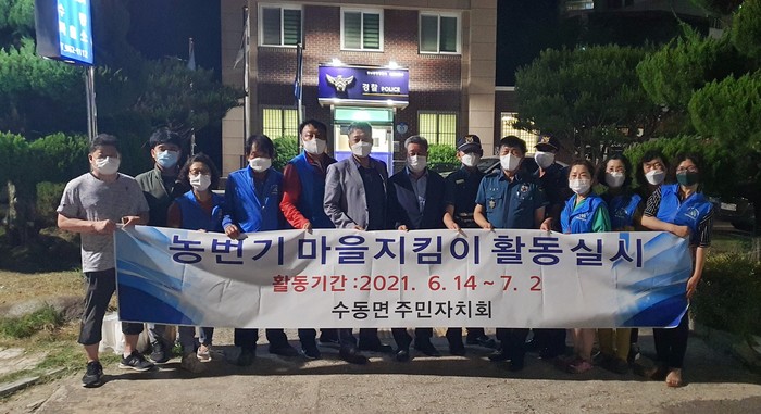 박남준 수동면 주민자치회장은 “농민들이 온갖 정성을 다해 땀 흘려 지은 농산물을 도난당하면 농민들의 상심이 이루 말 할 수 없이 클 뿐만 아니라 농촌경제에도 악영향을 줄 수 있어 농산물 절도 예방을 위한 집중 순찰을 실시하겠다.”고 다짐했다.