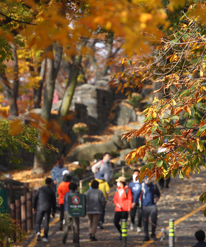 절기상 입동인 7일 오전 서울 남산 등산로가 단풍으로 곱게 물들어 있다.