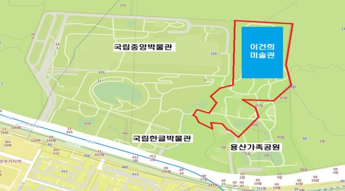 | ▲ 구가 문체부에 제안한 이건희 미술관 건립 위치(안). (사진제공=용산구청) |